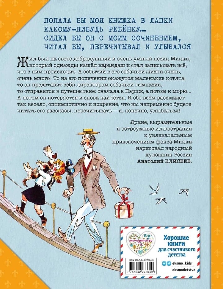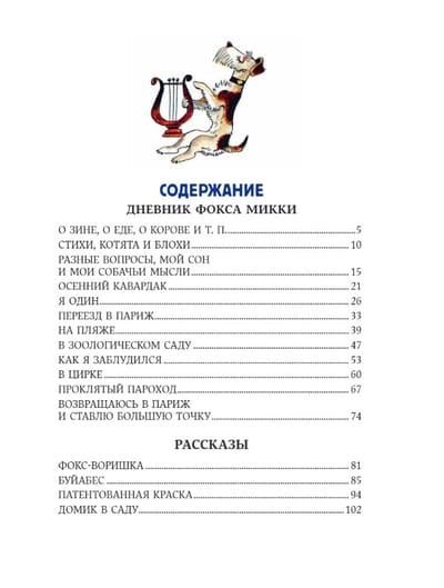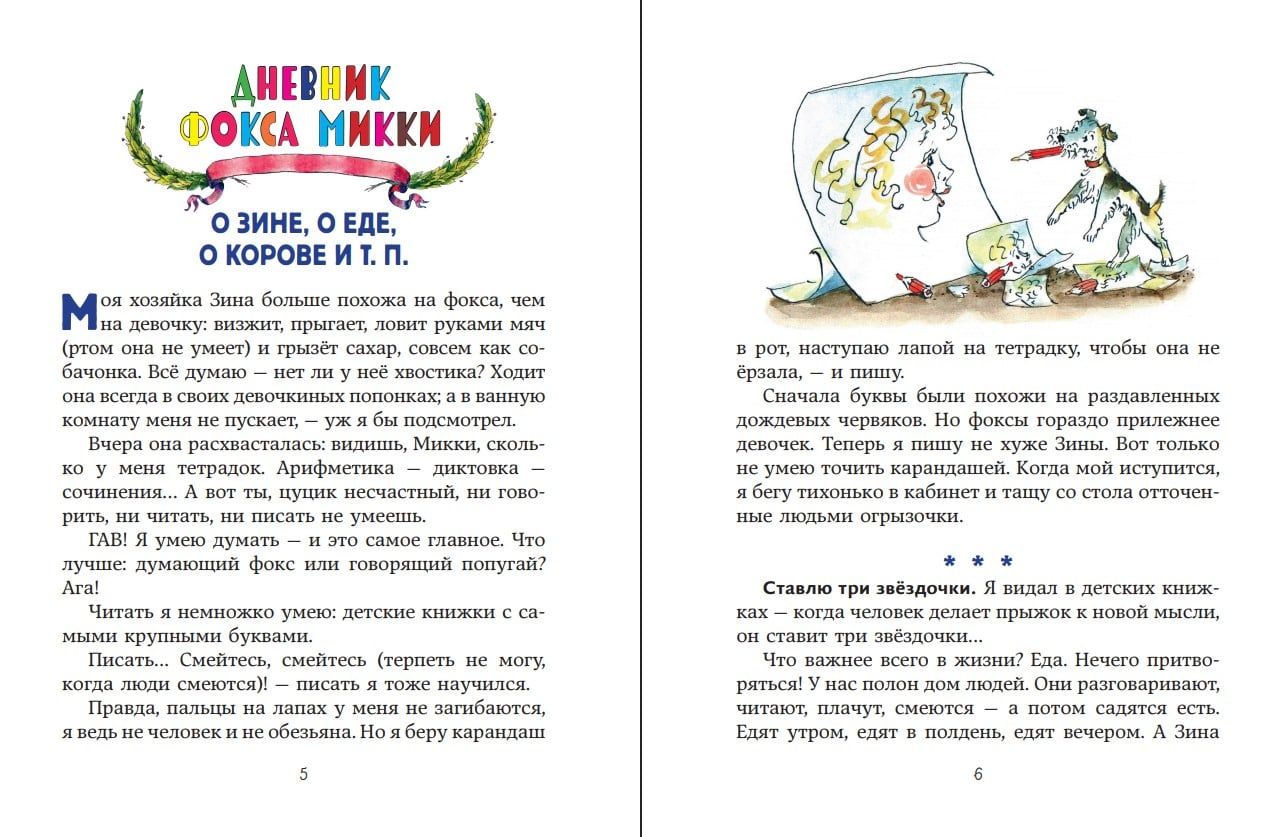«Дневник фокса Микки» — это 12 весёлых, добрых, немного наивных рассказов, придуманных русским писателем Сашей Чёрным для детей и взрослых. Друзья вспоминали, что, создавая эту книгу, Саша Чёрный почти в прямом смысле слова «влез в собачью шкуру»: пытался вести дневник, держа во рту огрызок карандаша, ловил зубами кегельный шар, лаял на граммофон и даже чесаться старался по-собачьи. Возможно, поэтому книга получилась такой увлекательной и правдоподобной. Ни у кого из читателей не возникает и тени сомнения в том, что умный, дружелюбный, находчивый и талантливый фоксик Микки действительно вёл дневник, который совершенно случайно попал в руки издателей. Прочитайте же его скорее и убедитесь в этом сами!
