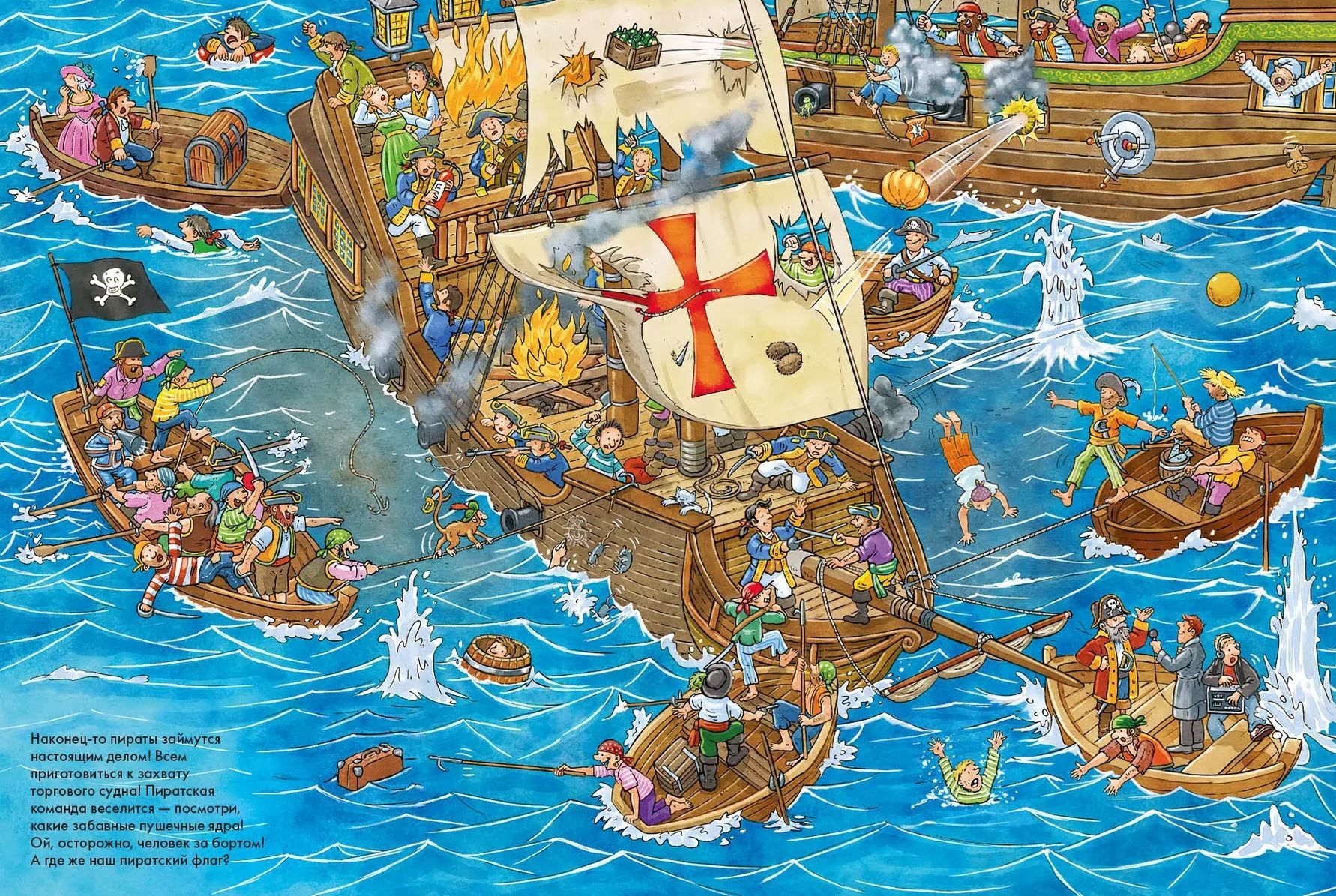 Эта книжка побуждает искать, находить и сочинять весёлые истории — увлекательное занятие для всех маленьких пиратов.