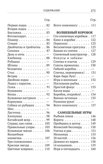 В этой книге вы найдете десятки добрых и увлекательных идей по тому, как весело и с пользой провести время в кругу семьи. Вы узнаете, как вместе с детьми организовать теневой театр и поставить настоящий спектакль или сыграть в баскетбол на столе. Если вашему ребенку нравится делать вещи своими руками, то вы сможете помочь ему смастерить лодку, сшить мягкую игрушку или собрать настоящий зоопарк из бумаги. Для тех, кому нравится решать сложные задачи, подготовлены интересные головоломки и фокусы. А еще с помощью этой книги вы сможете в игровой форме позаниматься с ребенком географией, арифметикой и другими школьными предметами. Пошаговые инструкции ко всем заданиям написаны доступным языком, а в более сложных случаях для наглядности добавлены схемы и поясняющие иллюстрации.
