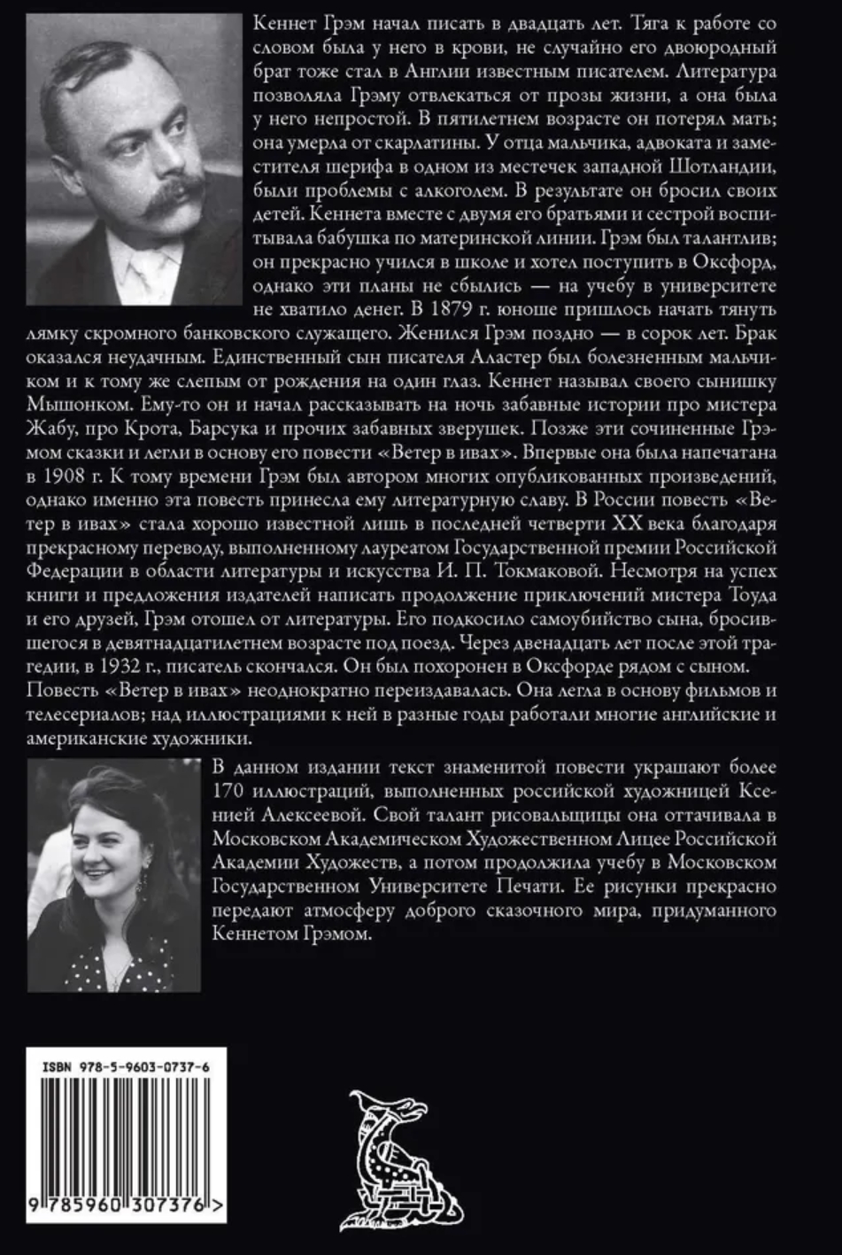 Впервые эта повесть, которая принесла ее автору, британскому писателю Кеннету Грэму, мировую славу, была опубликована в 1908 году. Она неоднократно переиздавалась, легла в основу многих фильмов и телесериалов, а над иллюстрациями к ней в разные годы работали многие английские и американские художники. В данном издании текст повести дан в переводе Ирины Петровны Токмаковой. Текст знаменитой повести украшают рисунки талантливой российской художницы Ксении Алексеевой.