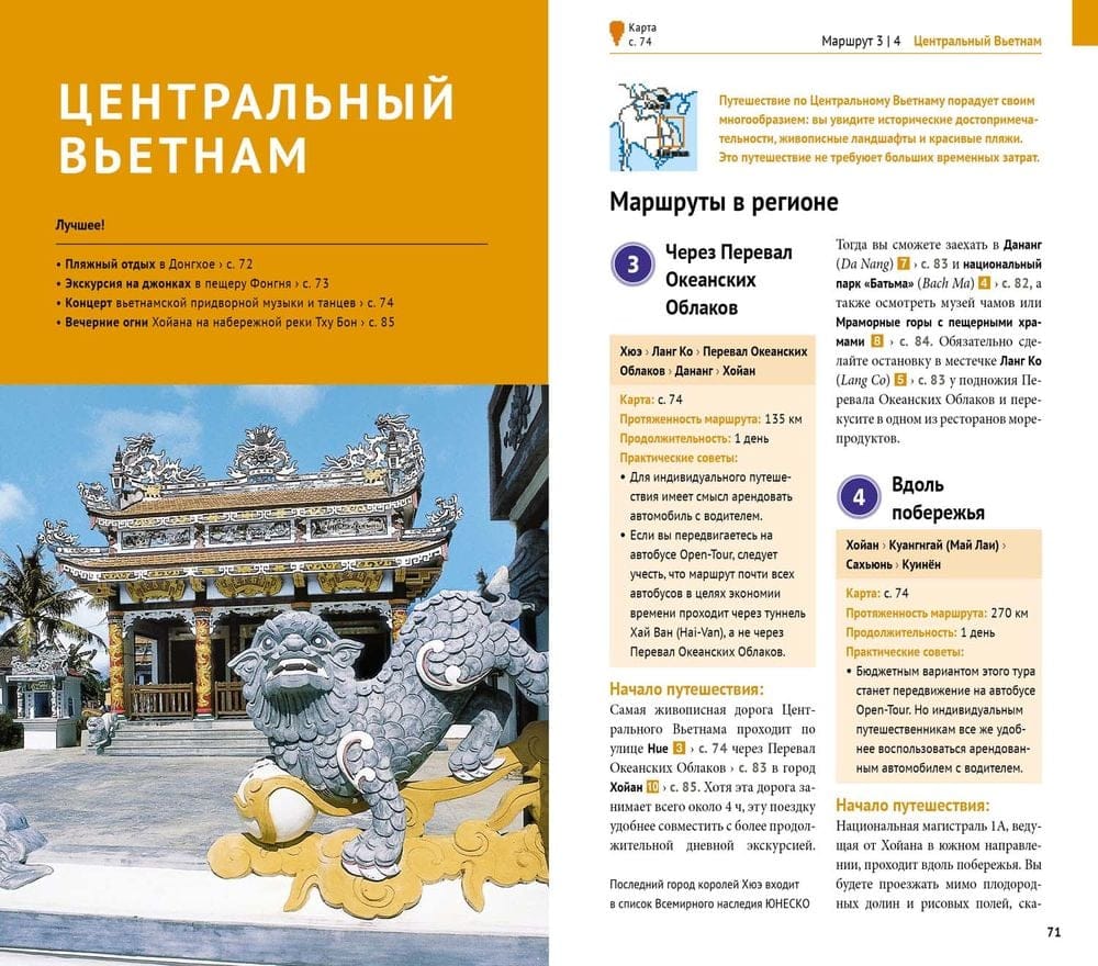 В путеводителе «Вьетнам» помимо удобных карт (11) и проверенных авторских маршрутов (10) с описанием важнейших достопримечательностей размещено много практической информации. Это полезные ссылки, которые пригодятся владельцам электронных гаджетов, адреса хороших (проверенных авторами) гостиниц и ресторанов, расписание работы музеев и многое другое.