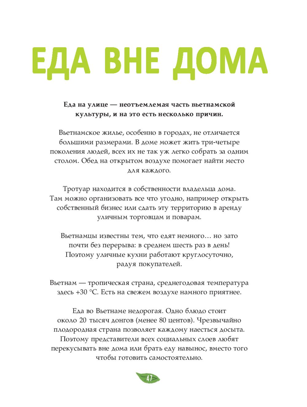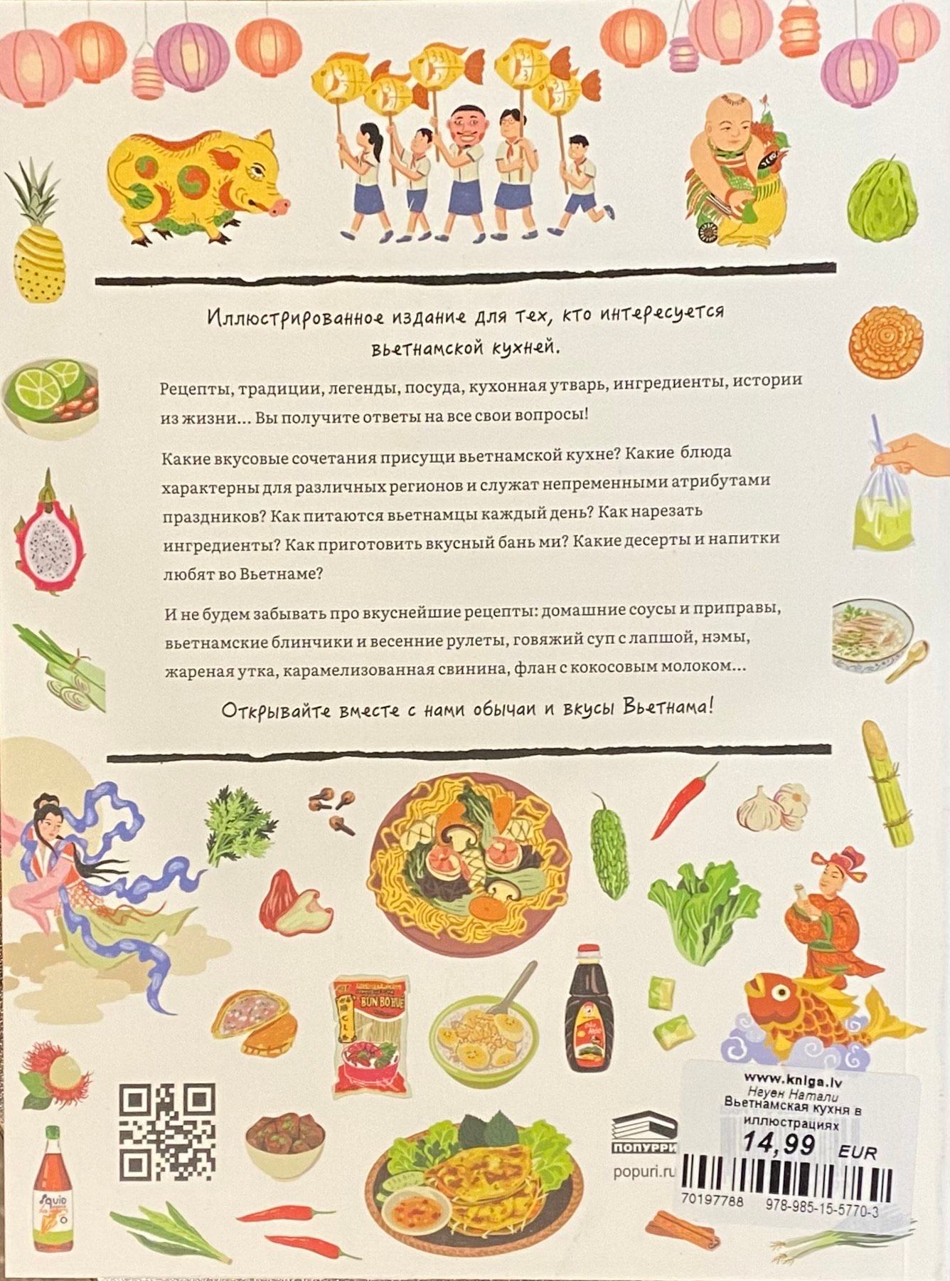 И не будем забывать про вкуснейшие рецепты: домашние соусы и приправы, вьетнамские блинчики и весенние рулеты, говяжий суп с лапшой, нэмы, жареная утка, карамелизованная свинина, флан с кокосовым молоком...