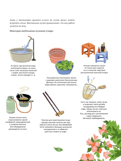 Какие вкусовые сочетания присущи вьетнамской кухне? Какие блюда характерны для различных регионов и служат непременными атрибутами праздников? Как питаются вьетнамцы каждый день? Как нарезать ингредиенты? Как приготовить вкусный бань ми? Какие десерты и напитки любят во Вьетнаме?