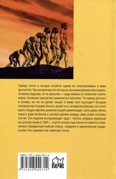 Герберт Уэллс и сегодня остаётся одним из популярнейших в мире фантастов. Тем интереснее его взгляд не на вымышленное или предполагаемое будущее, но на прошлое - ведь именно он позволяет понять корни, питавшие творчество знаменитого писателя. Что важно для него и почему, на что он делает акцент и мимо чего проходит? История человечества глазами Уэллса, кроме того, интересна всякому, кто хочет иметь общую картину развития нашей цивилизации, пусть даже сейчас наука в ряде вопросов и шагнула далеко вперед, сама схема осталась той же. Это издание воспроизводит труд Г. Уэллса, впервые изданный на русском языке в 1924 г., спустя четыре года после его визита в охваченную Гражданской войной страну, сохраняя и оригинальное предисловие того времени как памятник эпохи.