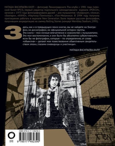 Наташа Васильева-Халл – фотограф Ленинградского Рок-клуба с 1981 года (членский билет №13), первый редактор подпольного самиздатовского журнала «РОКСИ», начиная с 1973 года фотографировала друзей рок-музыкантов – «Аквариум», «Алиса», «Зоопарк», «КИНО», «Наутилус-Помпилиус», «Поп-Механика». В 1994 году получила приглашение работать в журнале New Generation. Была первым русским фотографом, получившим аккредитацию на съемку Rolling Stones (концерт Wembley Stadium, 1995). «Здесь, как и в предыдущих моих книгах, вы не найдете ни биографии, ни дискографии, ни официальной истории группы.