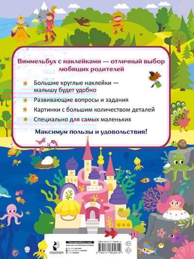 «Виммельбух для малышей. Найди и наклей» — это замечательная книжка, которая понравится любому ребёнку. Внутри — детальные иллюстрации, минимум текста и яркие наклейки. Малыш с удовольствием рассмотрит картинки и найдёт подходящую наклейку. Весёлые занятия развивают воображение, внимание, мелкую моторику, логику и аккуратность. Книга напечатана на качественной мелованной бумаге.
