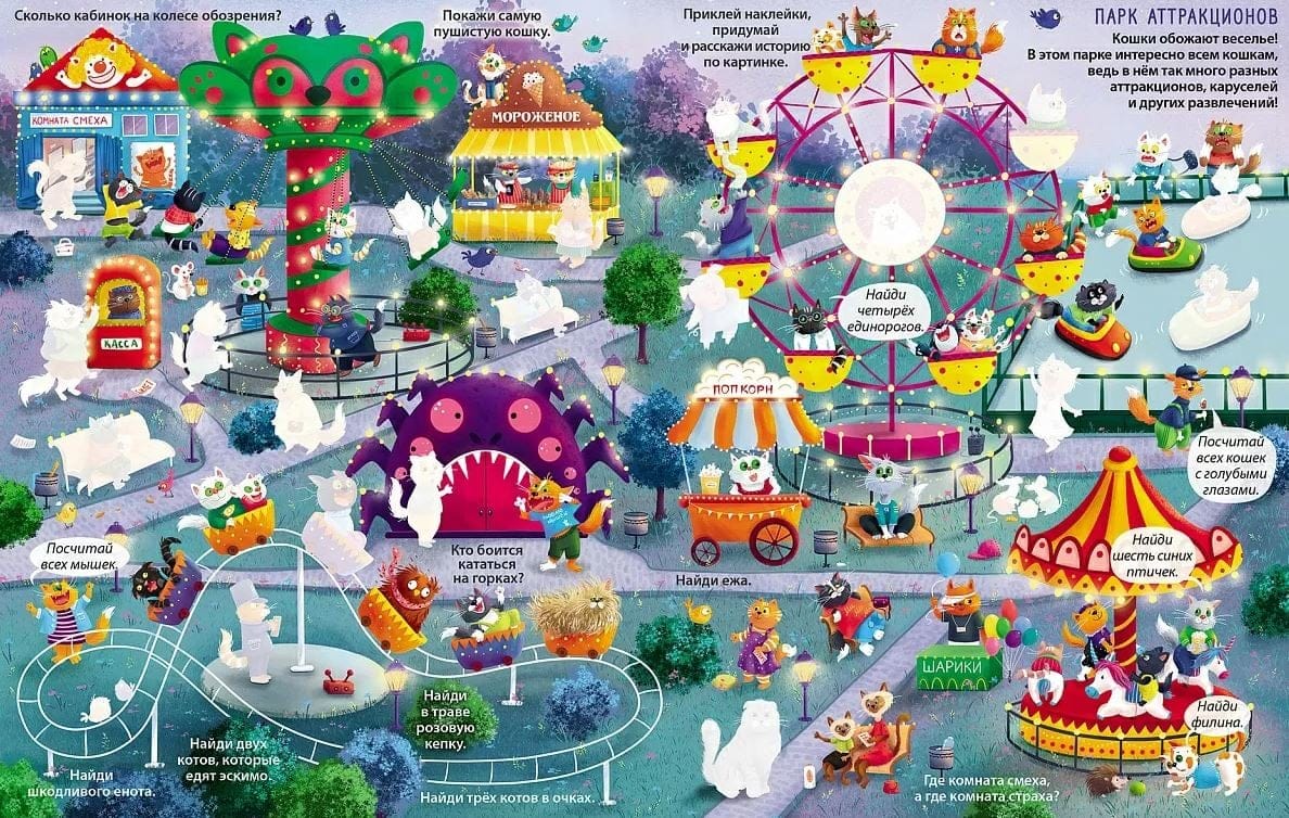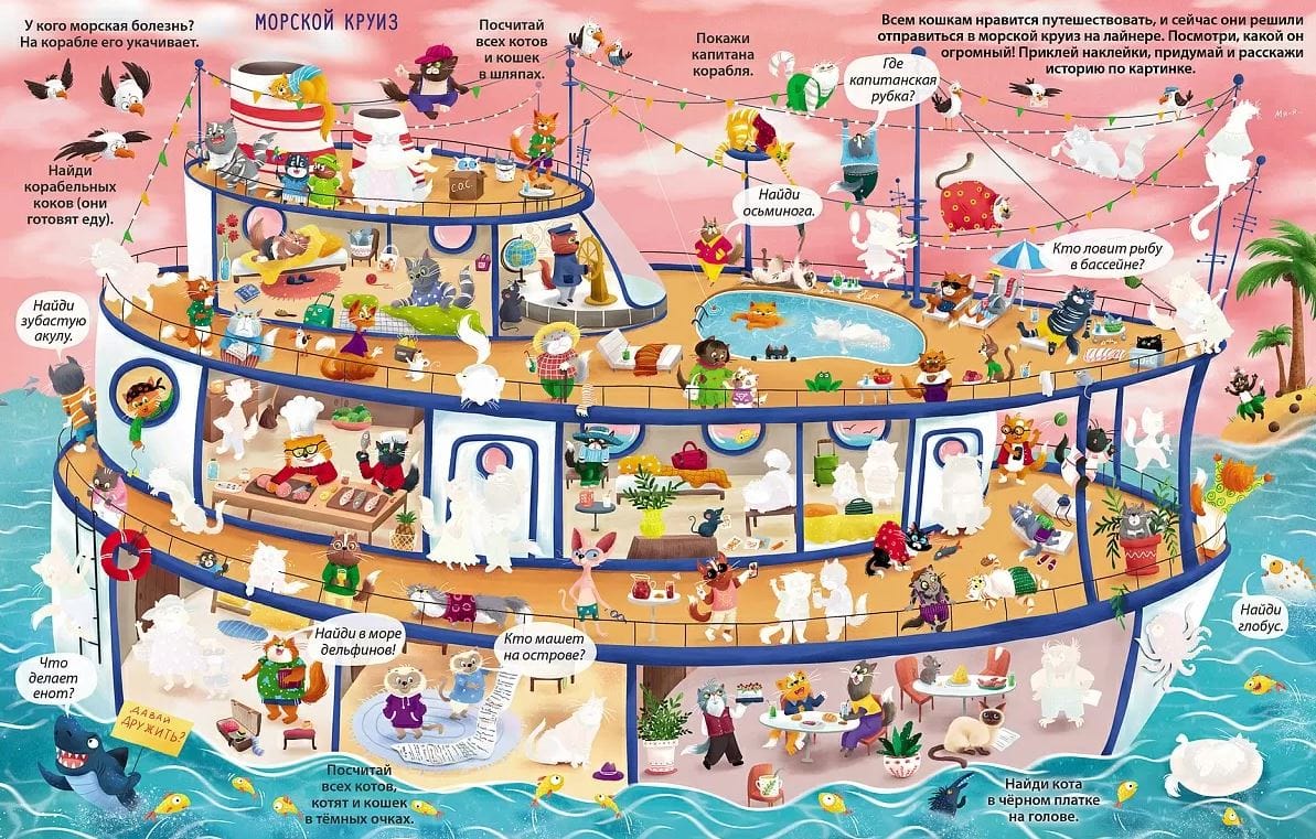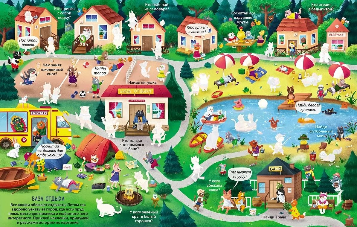 Вы держите в руках не просто книгу, а настоящий виммельбух с наклейками. Благодаря ярким иллюстрациям и занимательным заданиям эта книга надолго увлечёт вашего ребёнка и не даст ему скучать ни минуты.