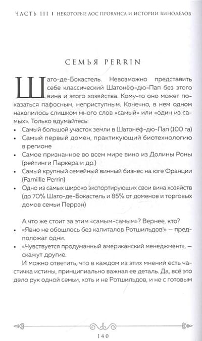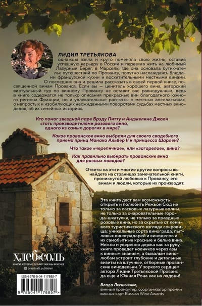 Книга Лидии Третьяковой, винолюба с большим стажем, живущего в Провансе, представляет собой авторский виртуальный тур по местным винодельням, позволяющий изучить особенности местных белых, красных и розовых вин, познакомиться с историями их производителей, больше узнать о волшебном мире виноделия юга Франции и Лазурного берега. Полное лиризма и занимательных фактов повествование не оставит равнодушными ни новичков, ни любителей, ни профессионалов в теме французских вин.