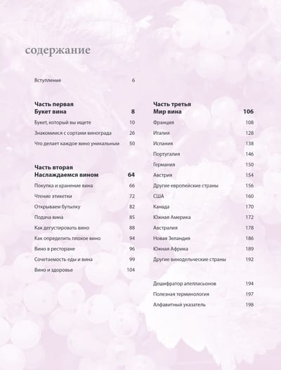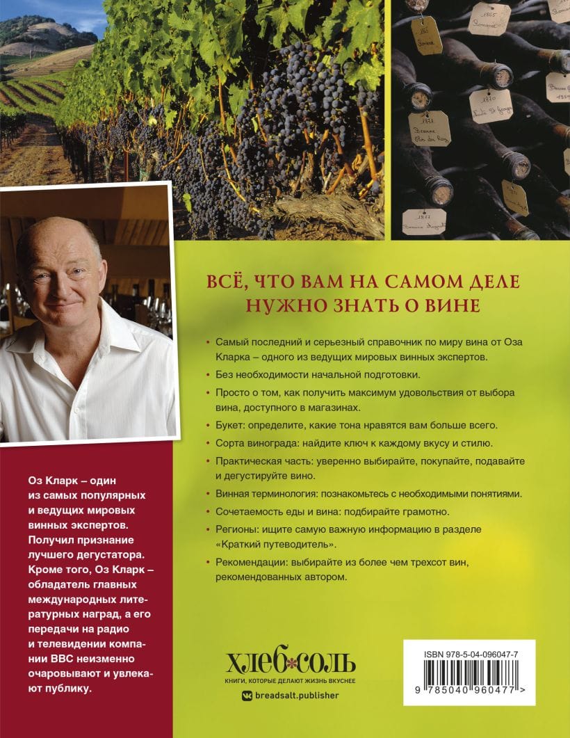 Обновленное и дополненное издание бестселлера от самого знаменитого винного эксперта Великобритании Оза Кларка поможет вам расширить свои представления о вине, откроет мир новых, волнующих, изысканных ощущений, ароматов и вкусов. В книге вы найдете информацию о сортах винограда и регионах его произрастания, узнаете историю виноделия и его современное состояние. Научитесь выбирать самое лучшее вино вне зависимости от его родословной и получать удовольствие от каждой купленной бутылки.