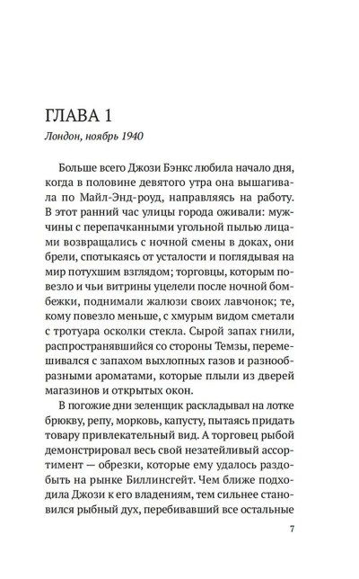 1940 год. Немецкие самолеты утюжат Лондон, и Джози Бэнкс беспомощно наблюдает, как рушится ее жизнь: муж Стэн отправился на фронт, их дом после бомбежки превратился в груду щебня, а хозяйка чайной, где работала Джози, погибла под развалинами… Молодая женщина чудом выжила сама, но осталась без денег и крыши над головой.