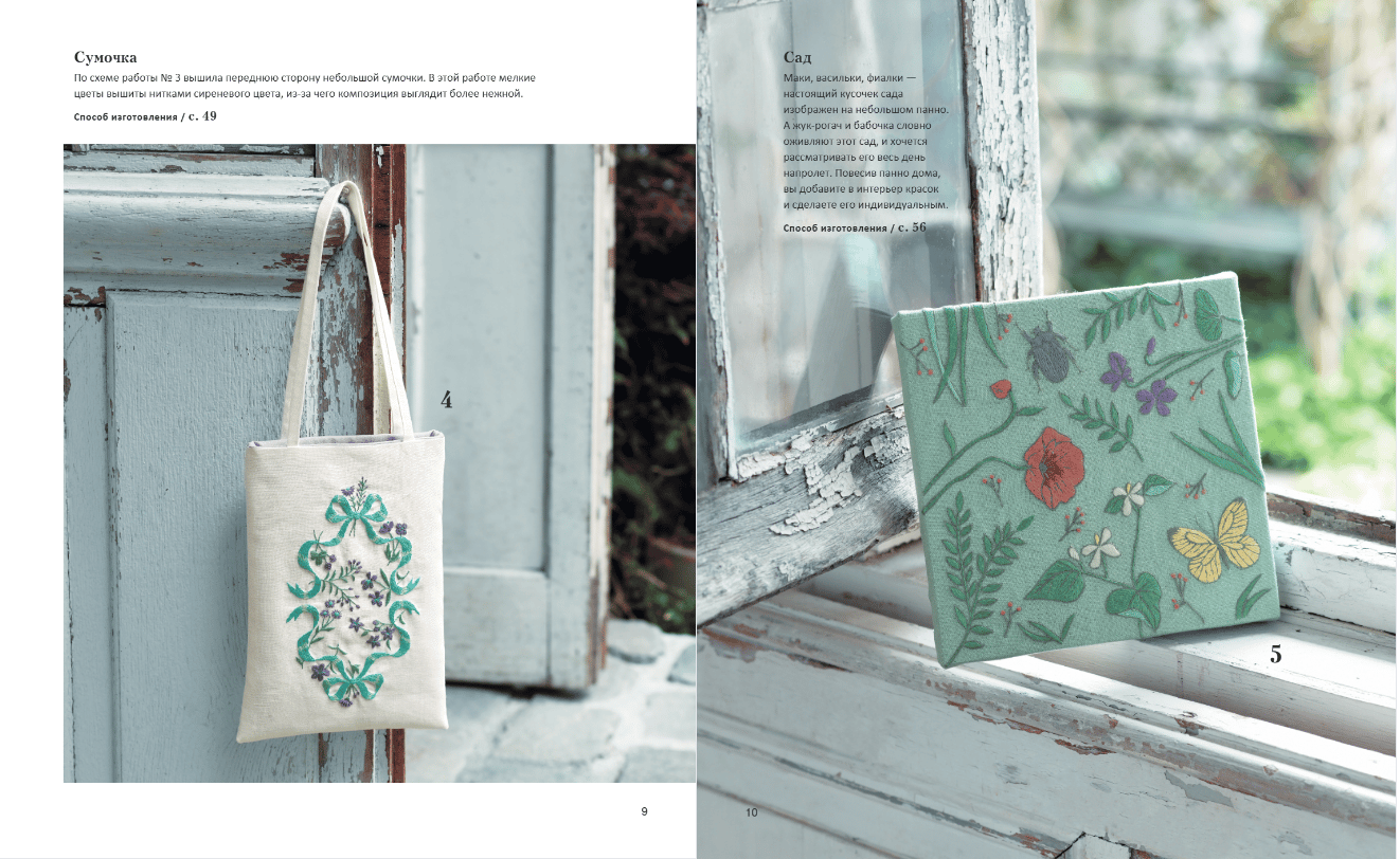 - Советы по подбору материалов и исчерпывающие инструкции по выполнению всех стежков.