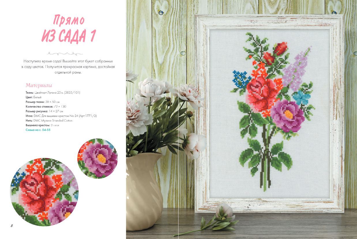 - Более 20 цветочных мотивов для вышивки крестиком.