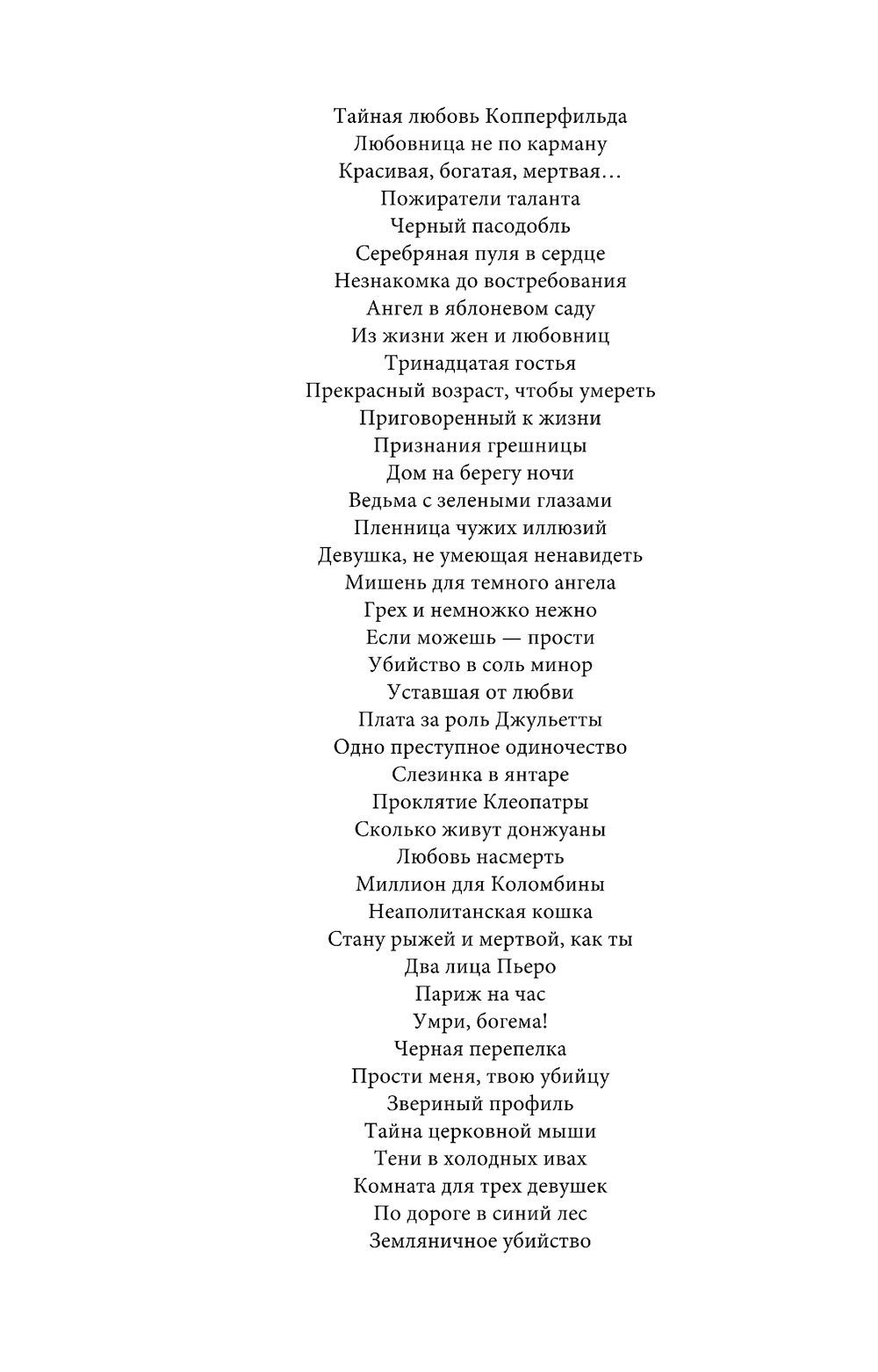 Она привыкла влюблять, покорять, восхищать. Мужское сердце для Милы трофей, которым она не слишком дорожит: завоевывает, использует, потом легко бросает. В сердечных делах ей даже интереснее одерживать верх над соперницами, ведь просто любить скучно. Неужели ни одна из них не готова отомстить? Или мстить должны те, кого она шутки ради успевает назвать виновными в своей смерти перед тем, как исчезнуть?..