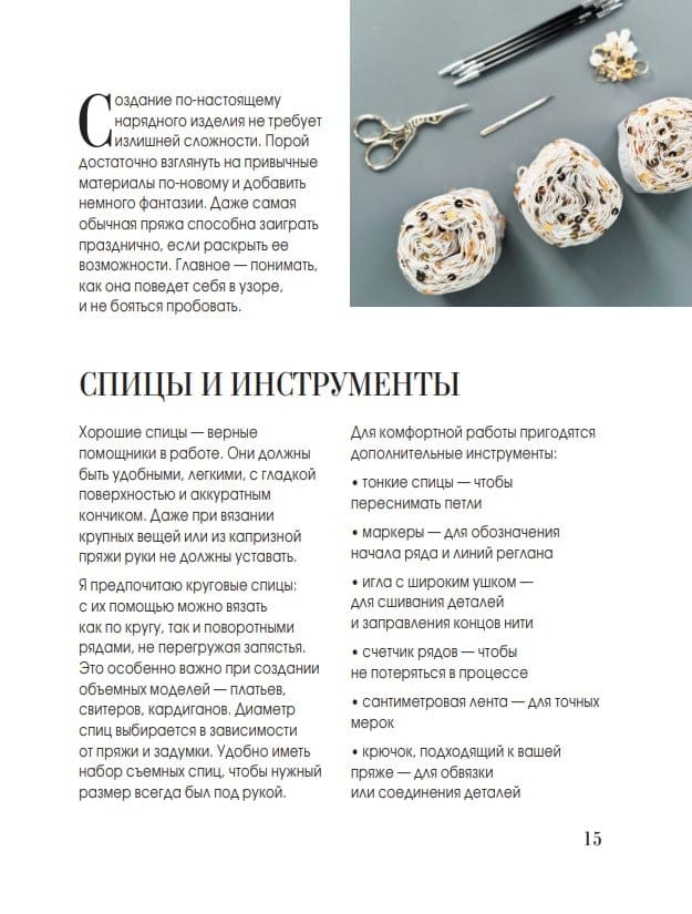 - советы по выбору пряжи и инструментов;