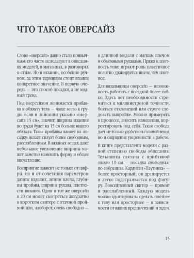 - узнаете, какая пряжа подходит для разных видов оверсайза и какие спицы лучше использовать для конкретных фасонов;