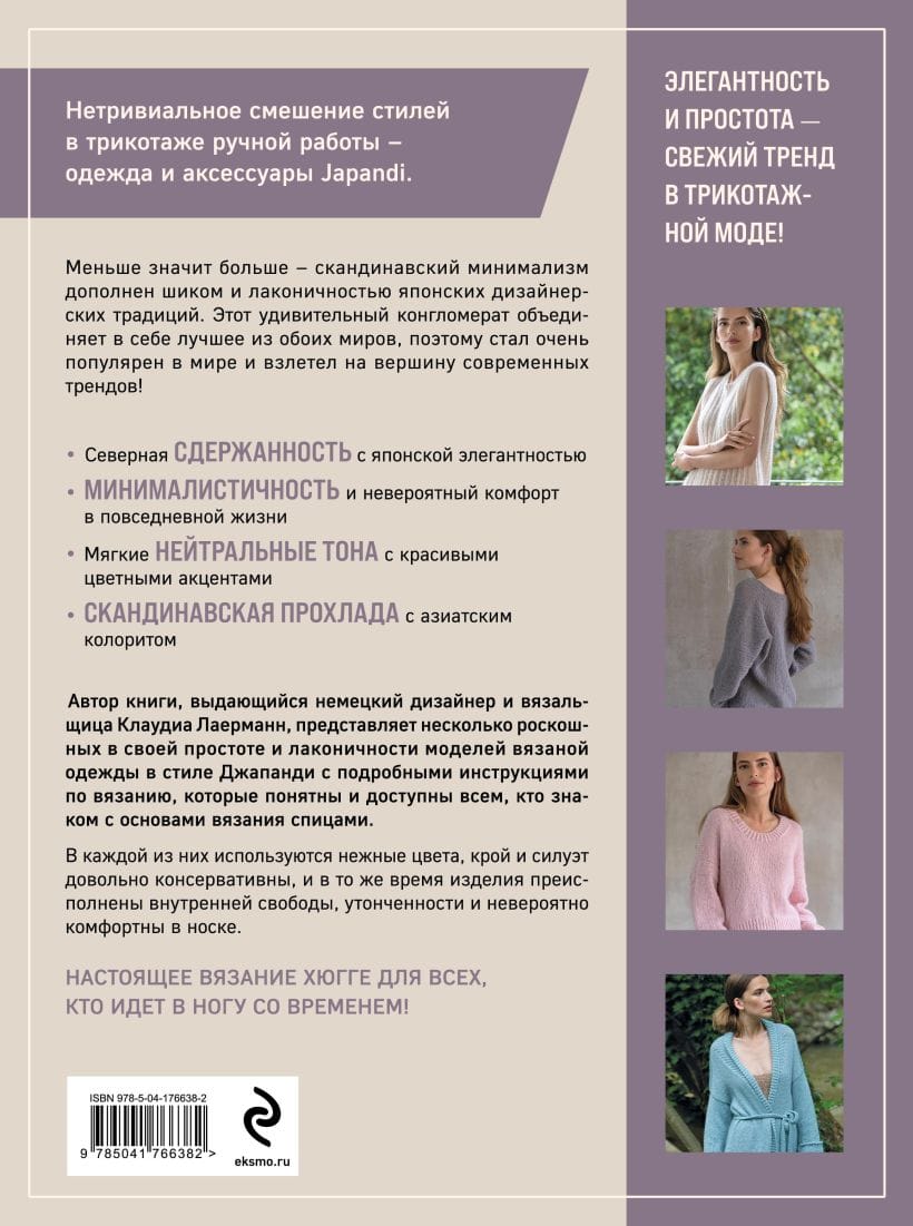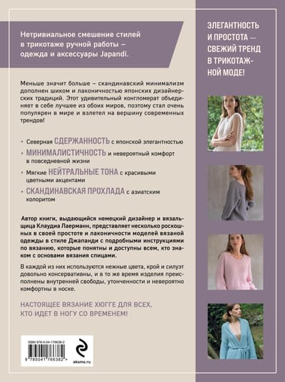 В книге — целая коллекция роскошных моделей вязаной одежды, которые просто созданы для тех, кто хочет быть на волне моды. Автор книги — Клаудиа Лаерманн, выдающийся немецкий дизайнер и вязальщица, дает подробные инструкции по вязанию, которые понятны и доступны всем, кто знаком с основами вязания спицами. В каждой модели используются нежные цвета, крой и силуэт довольно лаконичны, но в то же время изделия преисполнены внутренней свободы и утонченности. Это настоящее вязание хюгге для всех, кто идет в ногу со временем и следует за тенденциями современной вязаной моды.
