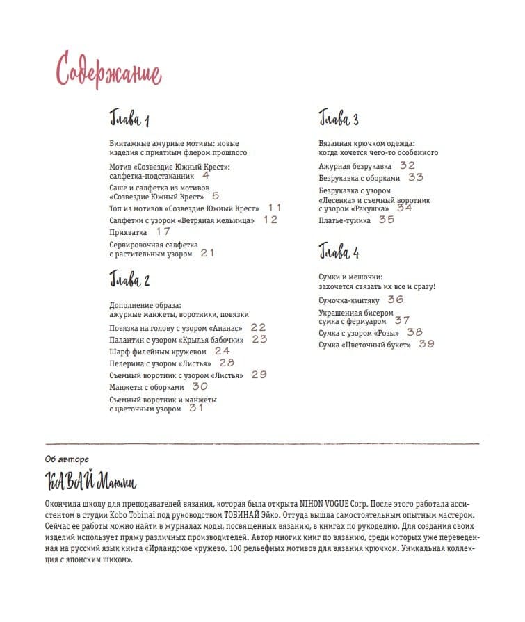 Перед вами — революционный подход от японского мастера Маюми Каваи. Ее философия — утонченная простота, доступная каждой. Знаменитая японская художница представляет уникальную авторскую коллекцию — 30 изделий для вязания крючком и полный базовый курс по созданию кружевных узоров. Новичок или мастер, каждый найдет для себя важное и интересное. Если вы начинающий, вы постигнете искусство вязаного кружева с нуля. Если опытная вязальщица — книга подарит наслаждение японской утонченностью, новыми нетривиальными идеями и морем вдохновения!