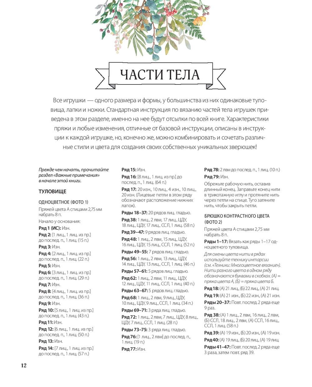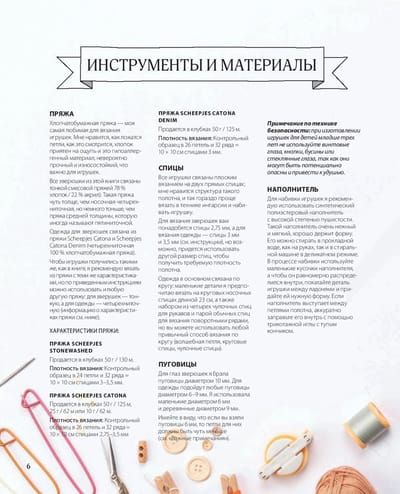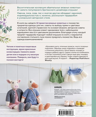 При виде этих симпатичных мордашек трудно не улыбнуться! И руки сами потянутся к спицам, чтобы связать лисичку, овечку или совушку своему ребенку или в подарок друзьям! Каждая зверушка со своим характером, выражением мордочки. А еще она одета по последней моде! Уникальность этой коллекции в том, что тела у всех игрушек одинаковые, поэтому вариантов составления гардероба может быть сколько угодно, ведь любой предмет одежды подходит каждой из них! Дети будут в восторге от увлекательной игры с переодеваниями. Родители получат массу удовольствия от процесса работы с этой подробной и понятной книгой, в которой создание каждого зверя сопровождает пошаговая инструкция. А от иллюстраций просто невозможно оторваться!