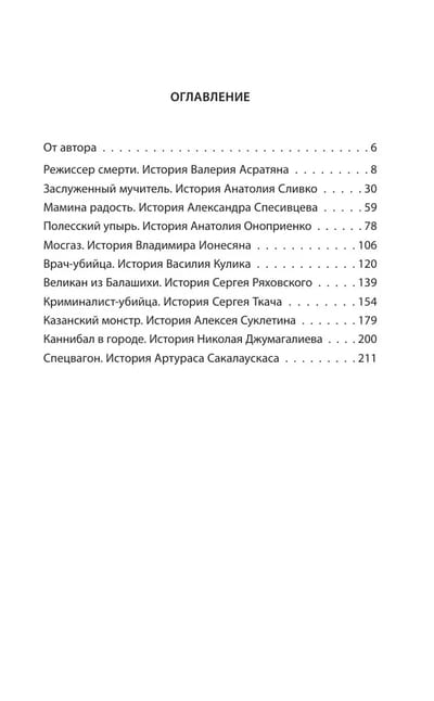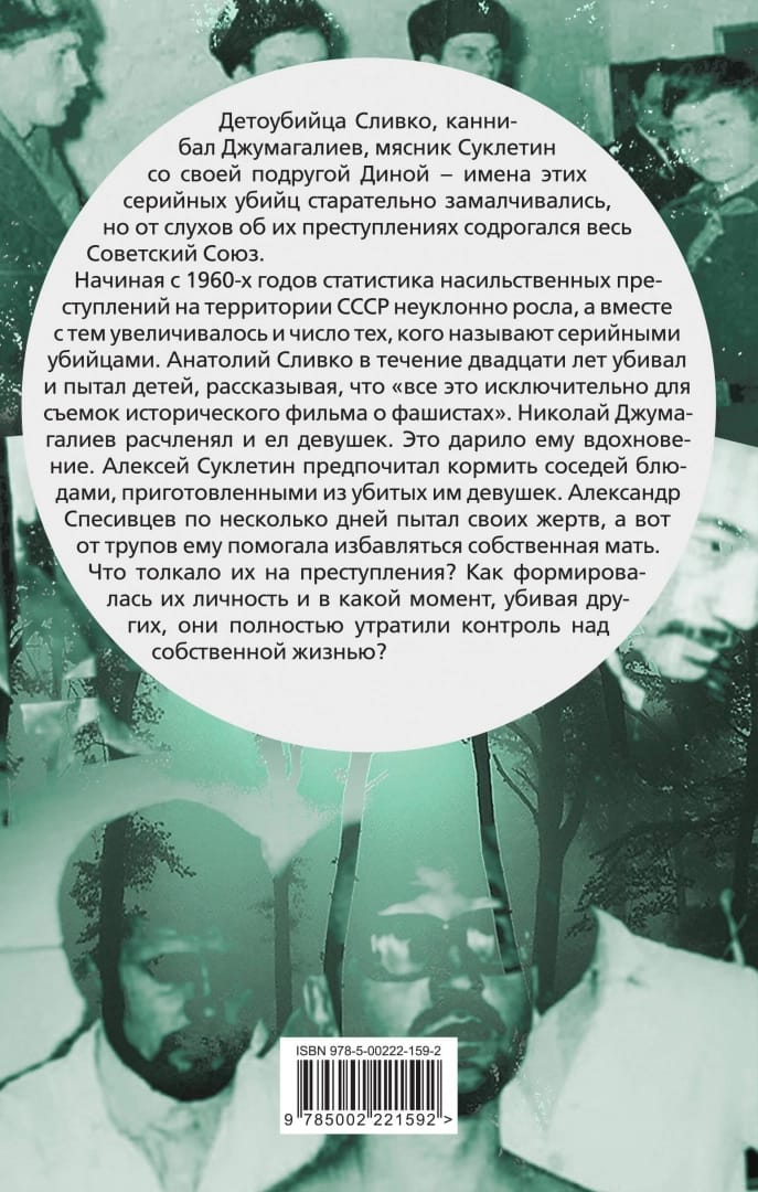 Начиная с 1960-х годов статистика насильственных преступлений на территории СССР неуклонно росла, а вместе с тем увеличивалось и число тех, кого называют серийными убийцами. Анатолий Сливко в течение двадцати лет убивал и пытал детей, рассказывая, что «все это исключительно для съемок исторического фильма о фашистах». Николай Джумагалиев расчленял и ел девушек. Это дарило ему вдохновение. Алексей Суклетин предпочитал кормить соседей блюдами, приготовленными из убитых им девушек. Александр Спесивцев по несколько дней пытал своих жертв, а вот от трупов ему помогала избавляться собственная мать. Что толкало их на преступления? Как формировалась их личность и в какой момент, убивая других, они полностью утратили контроль над собственной жизнью?
