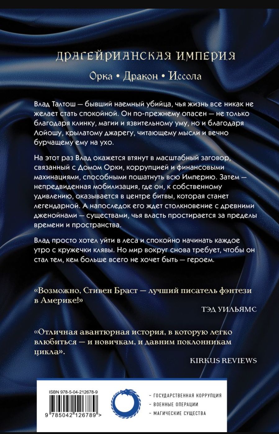 На этот раз у Влада Талтоша настоящие проблемы. Он всего лишь хотел помочь юноше, однажды спасшему его жизнь, но оказался втянут в игру с могущественным Домом Орки, чтобы раскрыть масштабный финансовый заговор. А потом случайно записался в армию (что для наемного убийцы звучит как провал карьеры). И, как вишенка на торте, отправился спасать друзей, которые, кажется, попали в лапы существ, способных изменять реальность. То есть в лапы дженойнов. Да-да, тех самых мифических создателей мира.