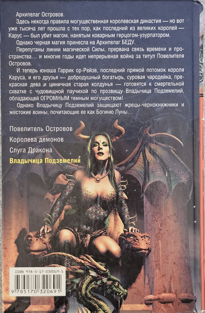Архипелаг Островов. Здесь некогда правила могущественная королевская династия — но вот уже тысяча лет прошла с тех пор, как последний из великих королей — Карус — был убит магом, нанятым коварным герцогом-узурпатором. Однако черная магия принесла на Архипелаг беду. Перепутаны линии магической Силы, прервана связь времени и пространства… и многие годы идет непрерывная война за титул Повелителя Островов. И теперь юноша Гаррик ор-Райзе, последний прямой потомок короля Каруса, и его друзья — добродушный богатырь, суровая чародейка, прекрасная дева и циничная старая колдунья — готовятся к смертельной схватке с чудовищной паучихой по прозвищу Владычица Подземелий, обладающей огромным темным могуществом! Однако Владычицу Подземелий защищают жрецы-чернокнижники и жестокие воины, почитающие ее как Богиню Луны…