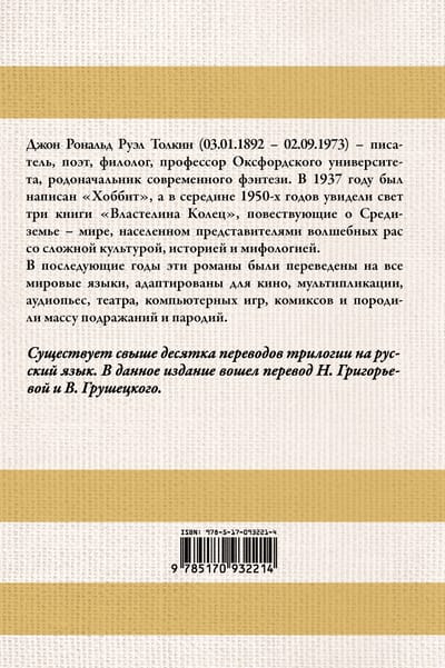 Существует свыше десятка переводов трилогии на русский язык. В данное издание вошел перевод Н. Григорьевой, В. Грушецкого.