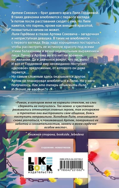Лиля Гордеева в глазах Артема Соковича – загадочная и неприступная девушка. В таких не влюбляются с первого взгляда. Ведь надо хорошенько постараться, чтобы рассмотреть ее истинную красоту под всеми этими балахонами и вечно недовольным выражением лица. Лично у Артема на это нет ни времени, ни желания. Да и девчонок вокруг, что ли, мало? И вот от Гордеевой ему неожиданно поступает «деловое» предложение, от которого он даже теряется…