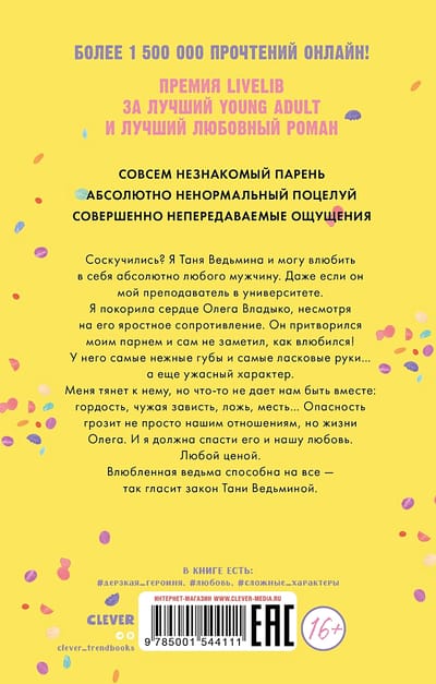 Я покорила сердце Олега Владыко несмотря на его яростное сопротивление. Он притворился моим парнем и сам не заметил как влюбился! У него самые нежные губы и самые ласковые руки…а еще ужасный характер. Меня тянет к нему, но что-то не дает нам быть вместе: гордость, чужая зависть, ложь, месть…Опасность грозит не просто нашим отношениям, но жизни Олега. И я должна спасти его и нашу любовь. Любой ценой. Влюбленная ведьма способна на все – так гласит закон Тани Ведьминой.