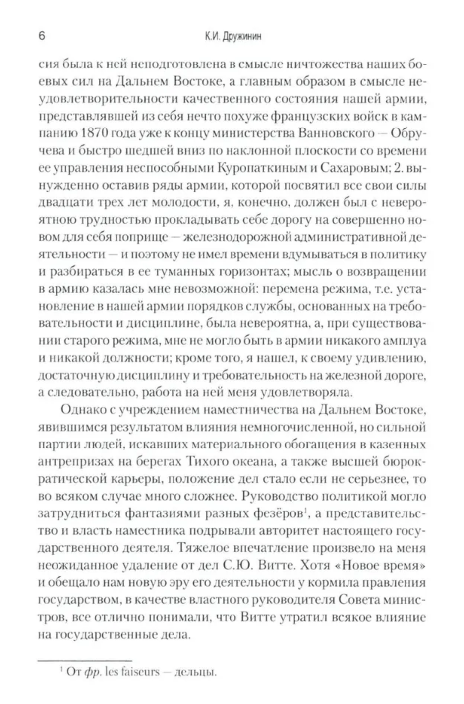 В своих воспоминаниях о войне Дружинин не только день за днем описывает события, участником которых ему довелось стать, но и подробно разбирает, подвергая заслуженной критике, действия командующего русской Маньчжурской армией генерала А. Н. Куропаткина.