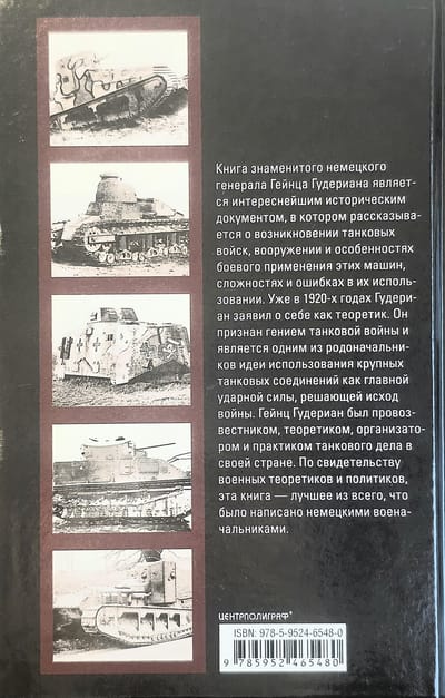 Знаменитый генерал нацистской Германии Гейнц Г Удериан рассказывает о возникновении танковых войск, вооружении и особенностях боевого применения этих машин, сложностях и ошибках в их использовании. Гудериан был провозвестником, теоретиком, организатором и практиком танкового дела в своей стране. По свидетельству военных теоретиков и политиков, эта книга — лучшее из всего того, что было написано немецкими генералами.