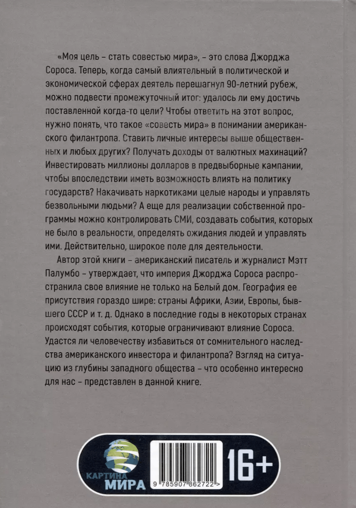 Автор этой книги - американский писатель и журналист Мэтт Палумбо - утверждает, что империя Джорджа Сороса распространила свое влияние не только на Белый дом. География ее присутствия гораздо шире: страны Африки, Азии, Европы, бывшего СССР и т.д. Однако в последние годы в некоторых странах