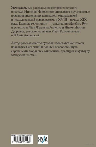Увлекательные рассказы известного советского писателя Николая Чуковского описывают кругосветные плавания знаменитых капитанов, открывателей и исследователей новых земель в XVIII - начале XIX века. Главные герои книги — англичанин Джеймс Кук и французы Жан Франсуа Лаперуз и Жюль Дюмон-Дюрвиля, русские капитаны Иван Крузенштерн и Юрий Лисянский. Автор рассказывает о судьбах известных капитанов, показывает нелегкий и полный опасностей путь европейских моряков к открытиям, традиции и культуру заморских племен.