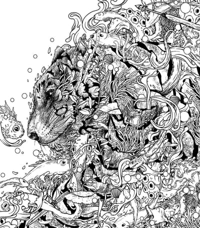 Встречайте долгожданное издание бестселлера Amazon в России — раскраску «Водные миры» мастера фантазийных сюжетов и тонких линий Джозефа Кэтимбэнга. Таинственный мир Mythographic раскрывается в удивительных преображениях дикой природы. Познакомьтесь с очаровательными животными, мифическими существами и скрытыми предметами!