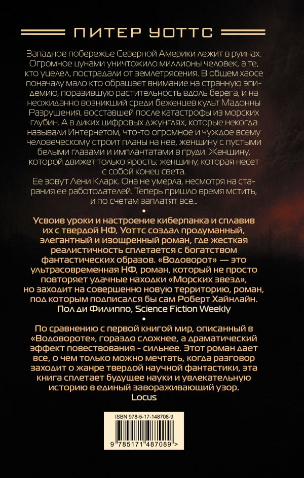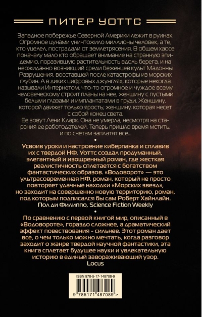 Западное побережье Северной Америки лежит в руинах. Огромное цунами уничтожило миллионы человек, а те, кто уцелел, пострадали от землетрясения. В общем хаосе поначалу мало кто обращает внимание на странную эпидемию, поразившую растительность вдоль берега, и на неожиданно возникший среди беженцев культ Мадонны Разрушения, восставшей после катастрофы из морских глубин. А в диких цифровых джунглях, которые некогда называли Интернетом, что-то огромное и чуждое всему человеческому строит планы на нее, женщину с пустыми белыми глазами и имплантатами в груди. Женщину, которой движет только ярость; женщину, которая несет с собой конец света.