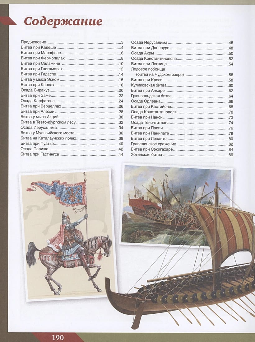 В книге представлено подробное описание самых важных сражений в истории человечества, предопределивших ход развития цивилизации и облик современного мира, каким мы его знаем сейчас. К великому сожалению, подобный способ разрешения противоречий люди практикуют с древнейших времен и до наших дней, а прослеживающаяся тенденция превращения глобальных конфликтов в локальные вовсе не умаляет всех тех страданий, жертв и разрушений, которые они с собой несут.