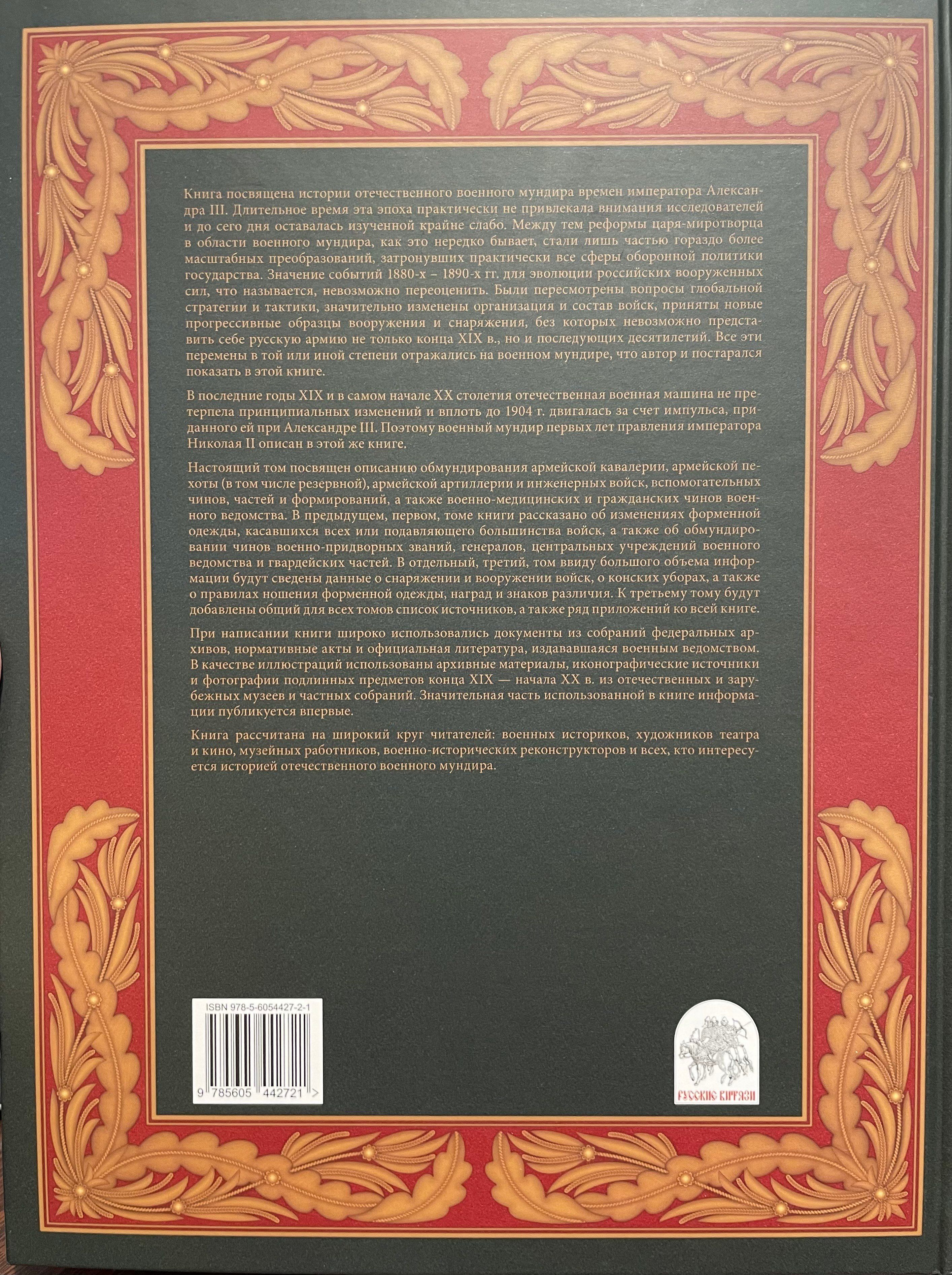 Книга посвящена истории отечественного военного мундира времен императора Александра III и первых лет правления императора Николая II.