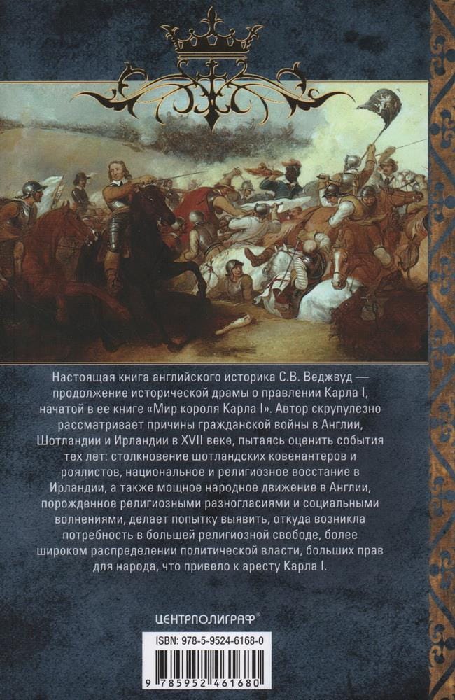 Настоящая книга английского историка С.В. Веджвуд —продолжение исторической драмы о правлении Карла I, начатой в ее книге «Мир короля Карла I». Автор скрупулезно рассматривает причины гражданской войны в Англии, Шотландии и Ирландии в XVII веке, пытаясь оценить события тех лет: столкновение шотландских ковенантеров и роялистов, национальное и религиозное восстание в Ирландии, а также мощное народное движение в Англии, порожденное религиозными разногласиями и социальными волнениями, делает попытку выявить, откуда возникла потребность в большей религиозной свободе, более широком распределении политической власти, больших прав для народа, что привело к аресту Карла I.