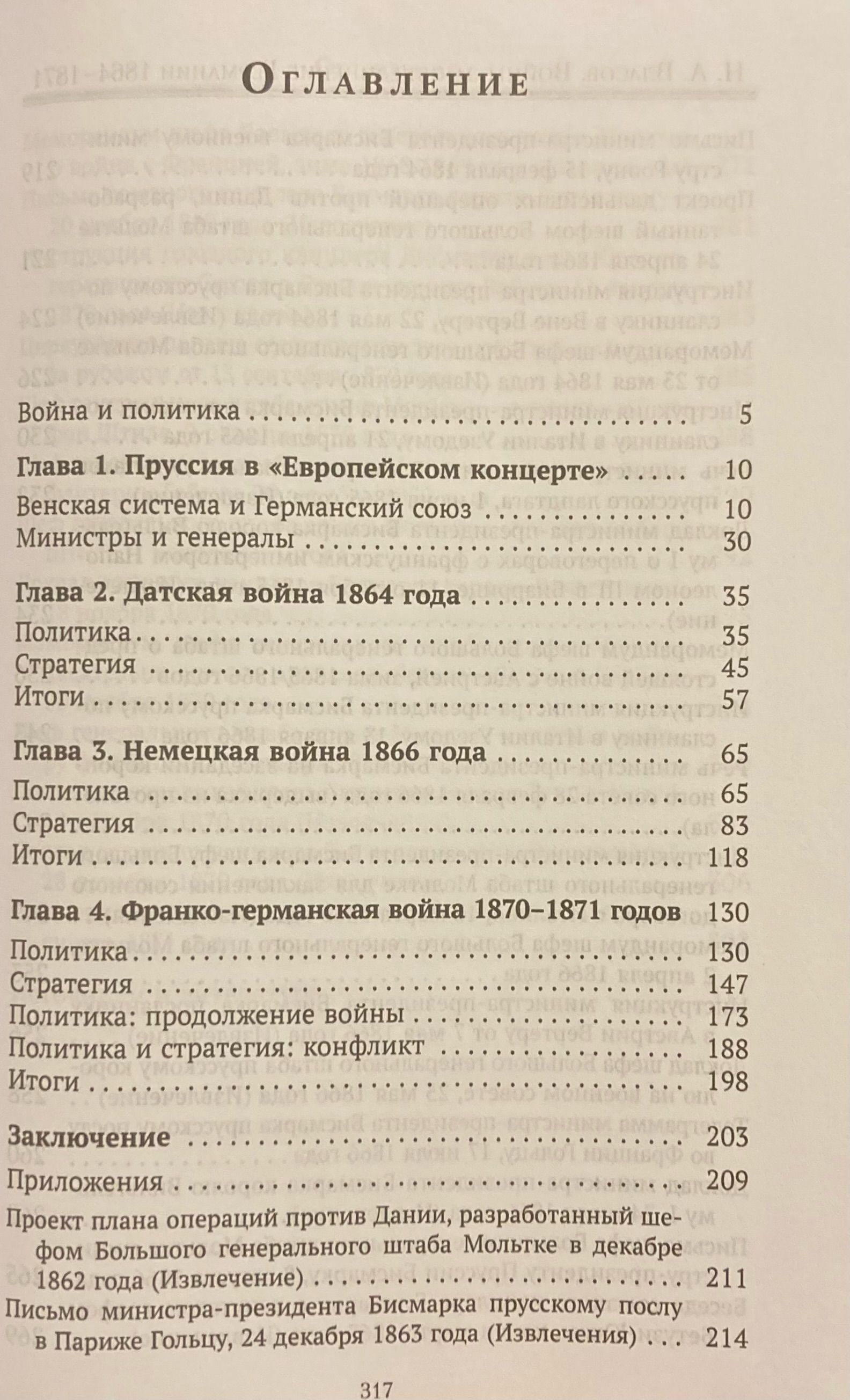 Представленная книга посвящена взаимодействию государственной политики и военной стратегии в ходе так называемый «войн за объединение Германии» 1864–1871 годов. Военный инструмент при этом рассматривается в первую очередь как средство достижения политической цели, изучается его роль в прусской политике 1860-х годов и особенности его применения. В то же время подчеркивается, что военная элита являлась самостоятельным игроком, не ограничивавшимся при планировании и проведении операций исполнением воли политиков. Это не могло не привести к определенным трениям в прусском руководстве, однако в конечном счете в Берлине удалось выработать достаточно успешную схему взаимодействия политики и стратегии, благодаря которой политическая цель оказалась достигнута — объединение Германии вокруг Пруссии стало реальностью.