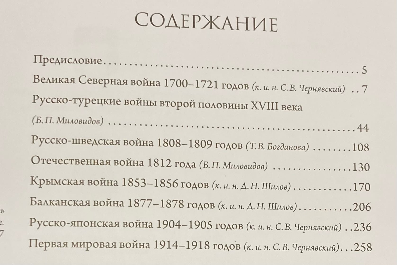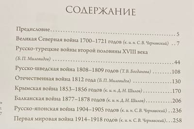 В альбоме опубликованы письма Петра I и А. Д. Меншикова; автографы прадеда А. С. Пушкина – военного инженера А. П. Ганнибала; рескрипты и жалованные грамоты Екатерины II российским полководцам; утвержденный Александром II «Устав о воинской повинности»; манифест Николая II о начале войны с Германией. Указы и манифесты, письма и телеграммы, газеты и журналы, карты, рисунки и фотографии позволяют проследить драматическую борьбу Российского государства за выход к Балтийскому и Черному морям, раскрыть героические страницы противостояния наполеоновской Франции, осветить историю создания новых Вооруженных Сил в эпоху Александра II и поведать об их борьбе за освобождение балканских славян, отдать дань памяти участникам последнего военного конфликта Российской империи – Первой мировой войны. Особое внимание при этом уделено личностям выдающихся российских полководцев и флотоводцев – Б. П. Шереметева, П. А. Румянцева, А. В. Суворова, А. Г. Орлова, Ф. Ф. Ушакова, М. И. Кутузова, М. Д. Скобелева, А. А. Брусилова и других. Всё это делает издание интересным для самого широкого круга читателей: студентов, учащихся, специалистов, любителей истории.