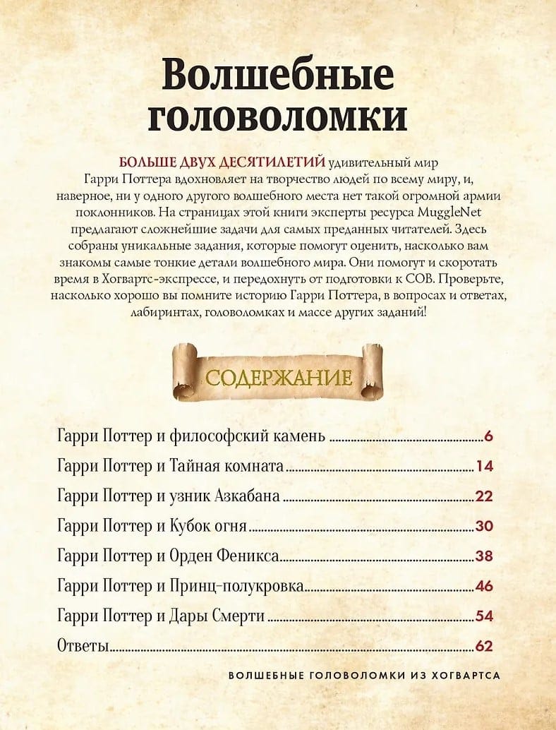 Эта книга — не просто сборник головоломок, а настоящее волшебное приключение для всех фанатов Гарри Поттера! Проверьте свои знания, разгадайте загадки и раскройте тайны знаменитой школы магии.