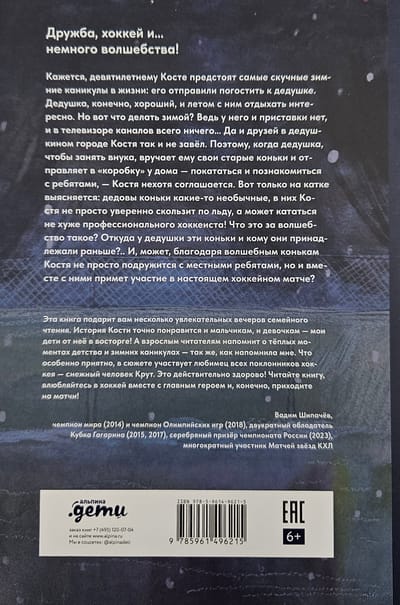 Поэтому, когда дедушка, чтобы занять внука, вручает ему свои старые коньки и отправляет в коробку у дома — покататься и познакомиться с ребятами — Костя нехотя соглашается. Вот только на катке выясняется: дедовы коньки какие-то необычные, в них Костя не просто уверенно скользит по льду, а может кататься не хуже профессионального хоккеиста! Что это за волшебство такое? Откуда у дедушки эти коньки и кому они принадлежали раньше?.. И может, благодаря волшебным конькам, Костя не просто подружится с местными ребятами, но и вместе с ними примет участие в настоящем хоккейном матче?