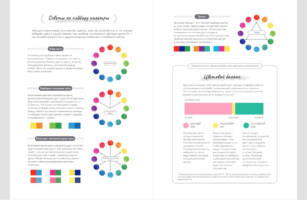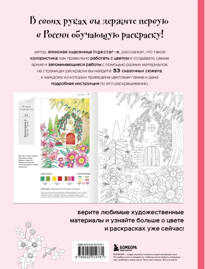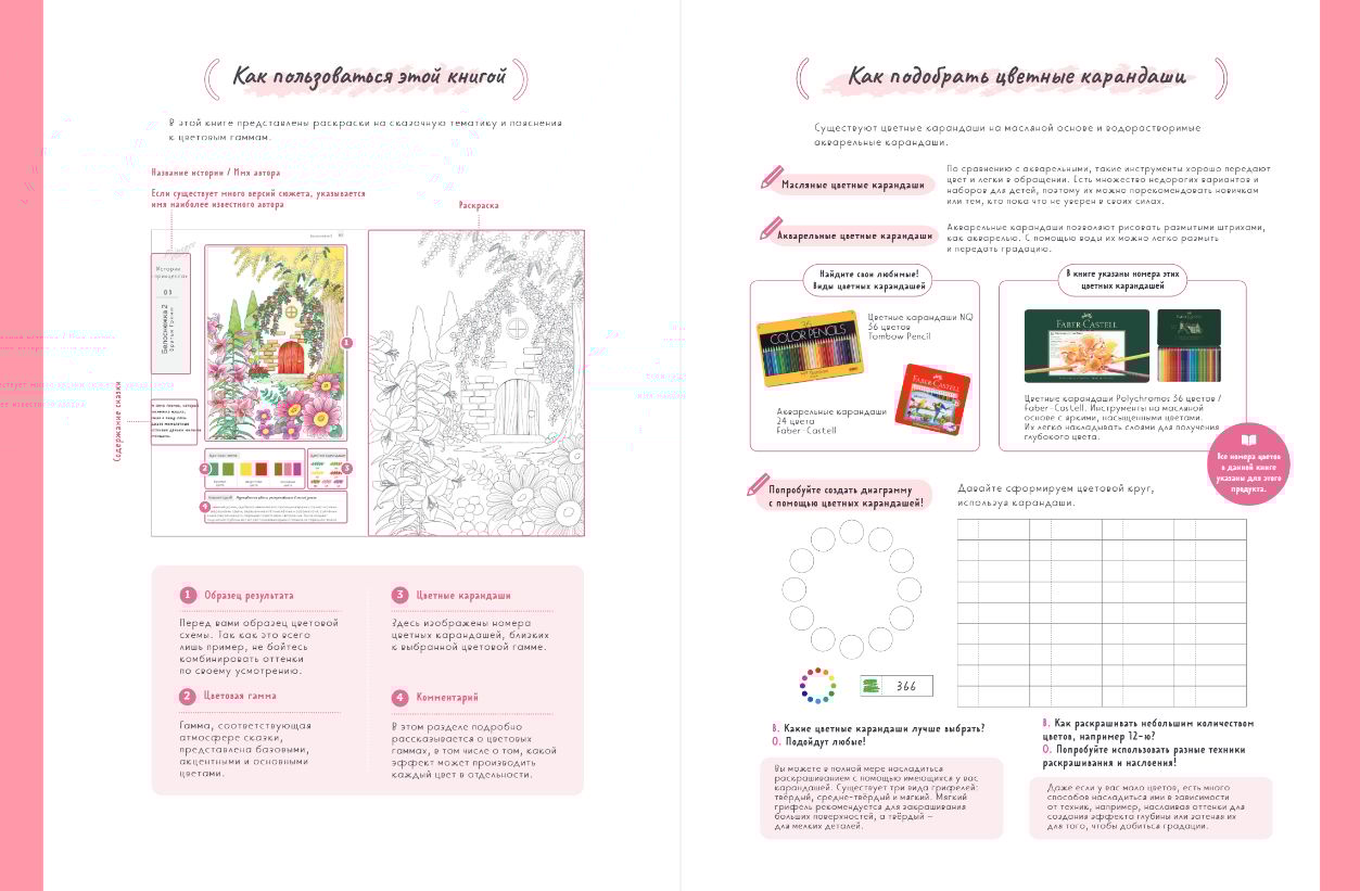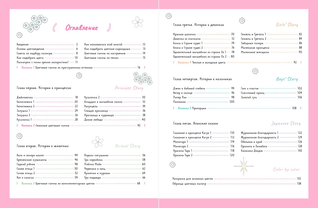 В этой книге японская художница ingetar-e собрала полезные советы и материалы по основам цветовой гармонии и сочетаний, чтобы каждая картинка получалась яркой и запоминающейся. Все иллюстрации сопровождаются цветовой раскладкой, что поможет читателю лучше ориентироваться в выборе творческих решений и не бояться экспериментировать в процессе раскрашивания! Ко всем теоретическим материалам подобраны самые очаровательные сюжеты по мотивам известнейших сказок со всего мира — от Золушки до принцессы Кагуя.