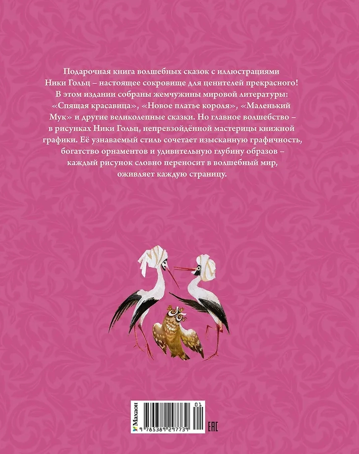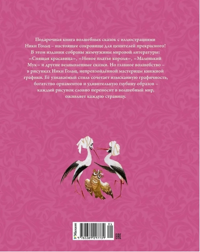 Подарочная книга волшебных сказок с иллюстрациями Ники Гольц — настоящее сокровище для ценителей прекрасного! В этом издании собраны жемчужины мировой литературы: «Спящая красавица», «Новое платье короля», «Маленький Мук» и другие великолепные сказки. Но главное волшебство — в рисунках Ники Гольц, непревзойдённой мастерицы книжной графики. Её узнаваемый стиль сочетает изысканную графичность, богатство орнаментов и удивительную глубину образов — каждый рисунок словно переносит в волшебный мир, оживляет каждую страницу.