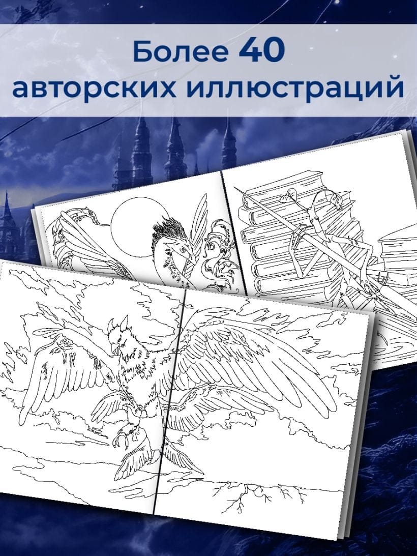 Гордый гиппогриф, мрачный фестрал, коварная русалка, мудрый кентавр. очаровательный нюхль и многие другие фантастические создания из мира Гарри Поттера ждут тебя на страницах этого волшебного издания! У тебя есть уникальный шанс почувствовать себя настоящим магозоологом и поближе познакомиться с диковинными существами, живущими в твоей любимой фэнтезийной вселенной. Заполни своими любимыми цветами чудесные иллюстрации и сделай знаменитую историю еще ближе.