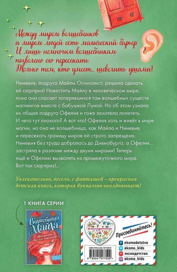 Фениксы, ковры-самолёты, поющие гекконы, летающие мётлы, приворотные зелья. Это мир Волшебницы Майлы, в котором она чувствует себя в безопасности. Совсем другое дело — мир людей. Непонятный, пугающий, далекий. Но ей снова придётся туда отправиться, и, конечно, не обойдётся без приключений. Есть суперсекретное дело… Нужно поймать одного волшебника, которого когда-то отправили в человеческий мир за ужасное преступление. Все уже давно забыли о нём и о том, что он невероятно опасен. А зря! Он много лет искал возможности вернуться. Но никто и представить не мог, кем он окажется!..