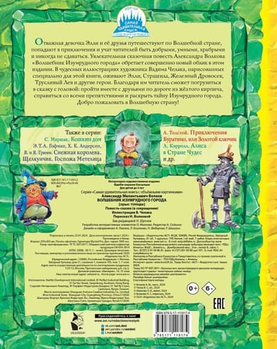 Отважная девочка Элли и её друзья уже много десятилетий путешествуют по Волшебной стране, попадают в приключения и учат читателей быть добрыми, умными, храбрыми и никогда не сдаваться. Увлекательная сказочная повесть Александра Волкова «Волшебник Изумрудного города» обретает совершенно новый облик в этом издании. В чудесных иллюстрациях известного художника Вадима Челака, нарисованных специально для этой книги, словно оживают Элли, Страшила, Железный Дровосек, Трусливый лев и другие герои. Благодаря им читатель сможет погрузиться в сказку с головой: пройти вместе с друзьями по дороге из жёлтого кирпича, справиться со всеми препятствиями и раскрыть тайну Изумрудного города. Добро пожаловать в Волшебную страну!