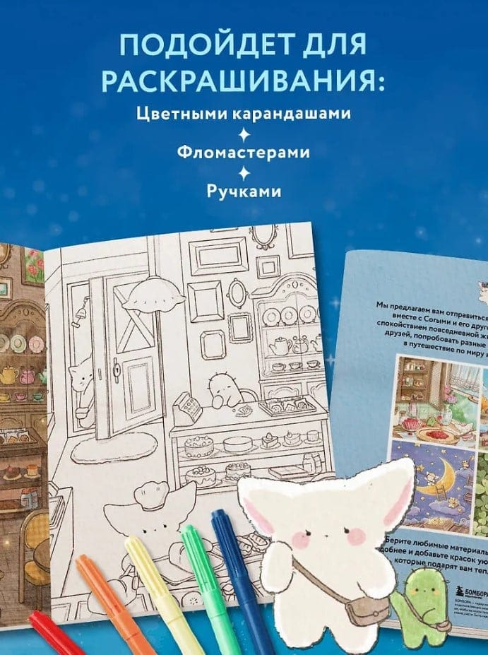 Корейский бестселлер от художницы SOGUMI. Невероятно милая и уютная раскраска, которая не только очарует своей нежностью, но и подарит чувство комфорта каждому, кто любит повседневные мелочи! Внутри более 60 иллюстраций о счастливой повседневной жизни пустынного лисенка Согыми и его друга кактуса Сосо, а также их цветные аналоги для вдохновения. Под одной обложкой корейская популярная художница SOGUMI создала целый мир, в котором живут ее очаровательные персонажи в разные времена года.