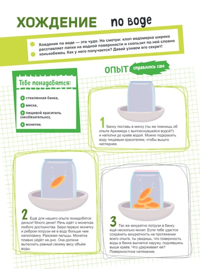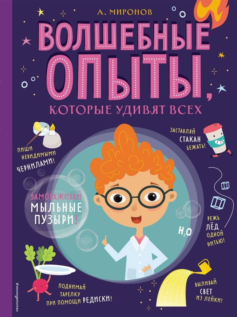 Удиви всех. Как? Устрой настоящее представление — проведи опыты и эксперименты, которые докажут, что природа — поистине могущественный волшебник. Заставь стакан бежать, разрежь лёд одной лишь нитью, вылей свет из лейки, подними тарелку при помощи редиски, заморозь мыльные пузыри, создай тайное послание при помощи невидимых чернил — тебе под силу ещё множество чудес, а поможет тебе во всём этом, конечно же, природа.