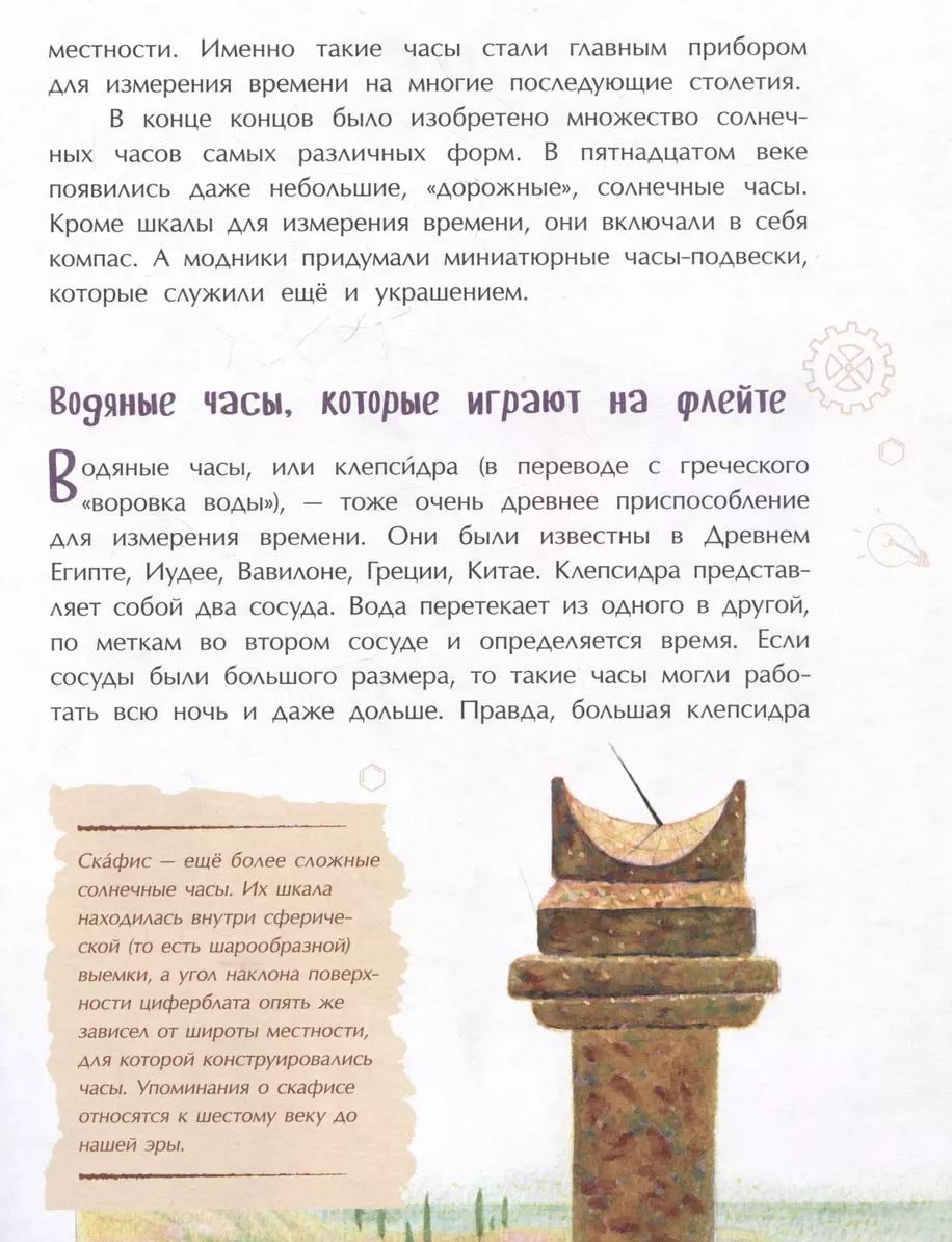 История часов с самых древних времён до наших дней. Как измерялось время в Древнем Египте и в Китае? Что такое солнечные, водяные, песочные и огненные часы, когда появились первые часовые механизмы? Какими часами пользовались европейцы и наши соотечественники в прошлых столетиях и как изменились часы сегодня?