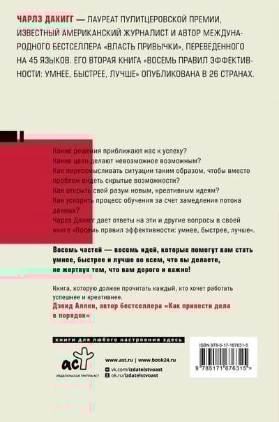 Чарлз Дахигг дает ответы на эти и другие вопросы в своей книге «Восемь правил эффективности: умнее, быстрее, лучше».